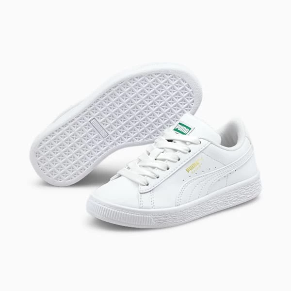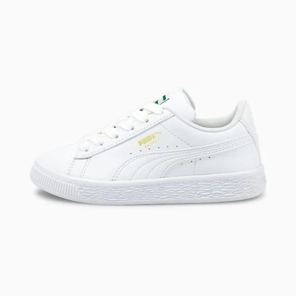 From the 1971 PUMA Archives, the Basket is a clean and classic kick inspired by PUMA court silhouettes. This year, we reissue the Basket with premium materials and elevated detailing. They’re never too young to rock the classics.<h3> DETAILS </h3><ul><li>Classic Basket lo-top silhouette</li><li>Leather upper</li><li>Full lace closure</li><li>Rubber midsole</li><li>Non-marking rubber outsole</li><li>PUMA Formstrip overlay with perforated detailing</li><li>Gold foil PUMA Basket callout at lateral side</li><li>PUMA Archive woven label at tongue</li></ul>
