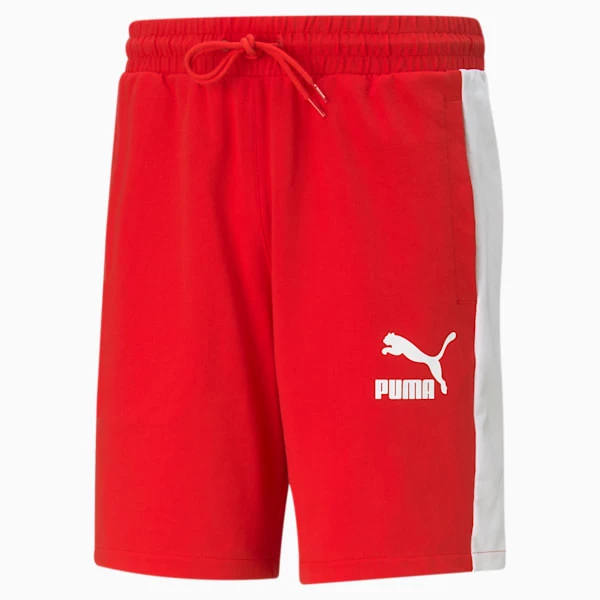 Rock a classic look from the PUMA Archives in these sleek and sporty Iconic T7 Jersey Shorts. Bold PUMA Archive branding combines with signature T7 panels at the sides for an instantly iconic look.<h3> DETAILS </h3><ul><li>Regular fit</li><li>8″ inseam length</li><li>Elastic waistband with external adjustable drawcords</li><li>Dual side slip-in pockets</li><li>Single back welt pocket</li><li>Contrast T7 panels at sides</li><li>PUMA Archive No.1 Logo print at left leg</li><li>93% Cotton 7% Elastane</li></ul>