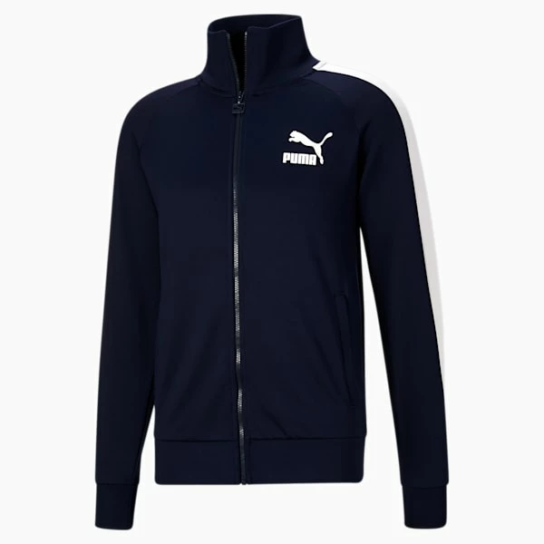 Straight out of the PUMA Archives, the Iconic T7 is a timeless style with fresh updates for modern streetwear. Signature T7 stripes at the sleeves and classic PUMA branding make this an instant streetstyle hit.<h3> FEATURES & BENEFITS </h3><ul><li>BETTER MATERIALS: Made with 59% recycled polyester to reduce environmental impact</li></ul><h3> DETAILS </h3><ul><li>Regular fit</li><li>Full zip closure with ribbed stand-up collar</li><li>Dual front slip-in pockets</li><li>Ribbed cuffs and hem</li><li>Contrast T7 stripes at sleeves</li><li>PUMA Archive No.1 Logo rubber print at left chest</li><li>59% Recycled Polyester 41% Cotton</li></ul>