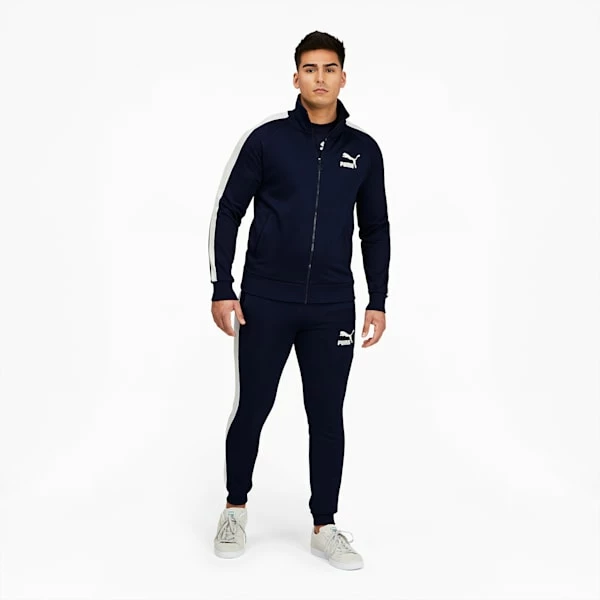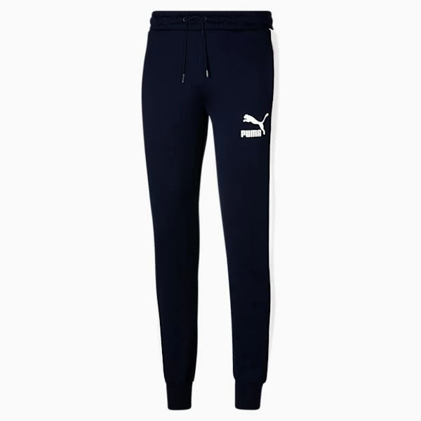 Straight out of the PUMA Archives, the T7 gets a fresh update for modern streetwear. The Iconic T7 Track Pants combine the slim cut of the OG silhouette with dual side pockets, an adjustable drawcord in the waistband and, of course, the signature T7 stripes at the sides. It doesn’t get more classic PUMA than this.<h3> FEATURES & BENEFITS </h3><ul><li>BETTER MATERIALS: Made with 59% recycled polyester to reduce environmental impact</li></ul><h3> DETAILS </h3><ul><li>Slim fit</li><li>Elastic waistband with external adustable drawcords</li><li>Dual side slip-in pockets</li><li>Ribbed cuffs</li><li>Signature T7 panel inserts at sides</li><li>PUMA Archive No.1 Logo rubber print at upper left thigh</li><li>59% Recycled Polyester 41% Cotton</li></ul>