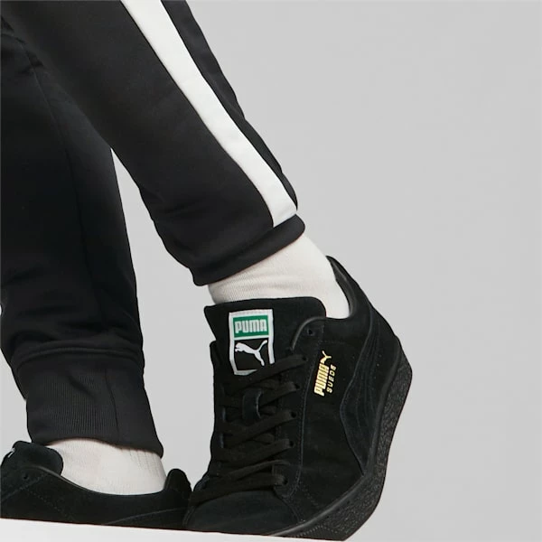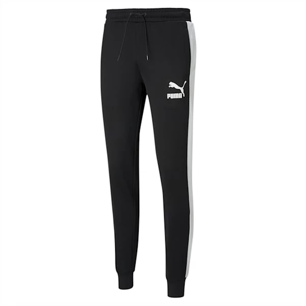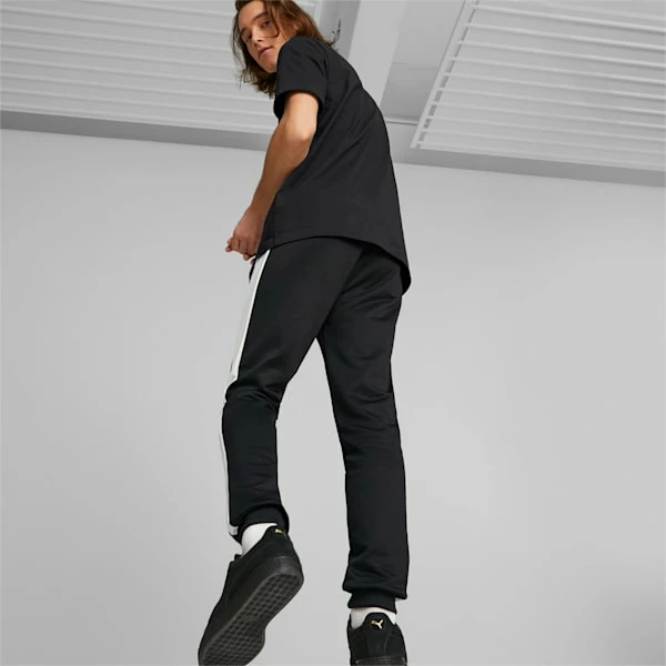 Straight out of the PUMA Archives, the T7 gets a fresh update for modern streetwear. The Iconic T7 Track Pants combine the slim cut of the OG silhouette with dual side pockets, an adjustable drawcord in the waistband and, of course, the signature T7 stripes at the sides. It doesn’t get more classic PUMA than this.<h3> FEATURES & BENEFITS </h3><ul><li>BETTER MATERIALS: Made with 59% recycled polyester to reduce environmental impact</li></ul><h3> DETAILS </h3><ul><li>Slim fit</li><li>Elastic waistband with external adustable drawcords</li><li>Dual side slip-in pockets</li><li>Ribbed cuffs</li><li>Signature T7 panel inserts at sides</li><li>PUMA Archive No.1 Logo rubber print at upper left thigh</li><li>59% Recycled Polyester 41% Cotton</li></ul>
