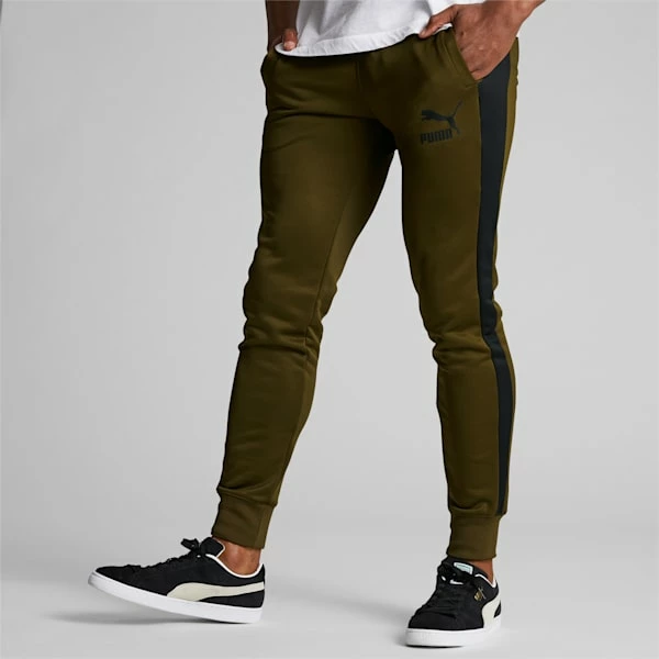 Straight out of the PUMA Archives, the T7 gets a fresh update for modern streetwear. The Iconic T7 Track Pants combine the slim cut of the OG silhouette with dual side pockets, an adjustable drawcord in the waistband and, of course, the signature T7 stripes at the sides. It doesn’t get more classic PUMA than this.<h3> FEATURES & BENEFITS </h3><ul><li>BETTER MATERIALS: Made with 59% recycled polyester to reduce environmental impact</li></ul><h3> DETAILS </h3><ul><li>Slim fit</li><li>Elastic waistband with external adustable drawcords</li><li>Dual side slip-in pockets</li><li>Ribbed cuffs</li><li>Signature T7 panel inserts at sides</li><li>PUMA Archive No.1 Logo rubber print at upper left thigh</li><li>59% Recycled Polyester 41% Cotton</li></ul>