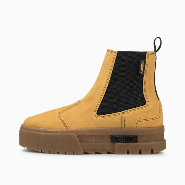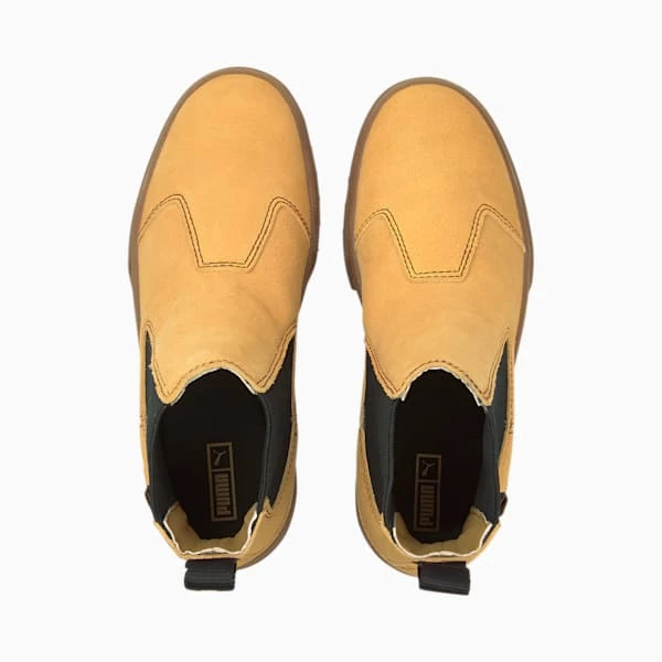 This season, we’ve given a PUMA twist to the classic Chelsea boot – made with all you trendsetters, streetstyle enthusiasts and fashion mavens in mind. This stand-out silhouette takes inspiration straight from the streets, with a stacked sole and contrast rubber tooling for an edgy, layered look. A full suede upper and elastic panels at the quarter add an elegant touch to this outstanding collision of classic and contemporary elements – with a SoftFoam sockliner for a comfy, cushioned stride.<h3>FEATURES & BENEFITS</h3><ul><li>Contains Recycled Material: Made with recycled fibers. One of PUMA’s answers to reduce our environmental impact.</li><li>SoftFoam: PUMA’s dual-density insole provides two unique layers of cushioning for customised comfort, fit and long-lasting durability</li></ul><h3>DETAILS</h3><ul><li>Mid boot</li><li>Full suede upper with elastic panels at quarter</li><li>Rubber midsole</li><li>Rubber outsole</li><li>Thick recycled webbing on heel</li><li>Woven label with PUMA No. 2 Logo at quarter</li><li>Printed PUMA Wordmark at heel webbing</li><li>PUMA branding on sockliner</li><li>PUMA Wordmark at midsole</li></ul>