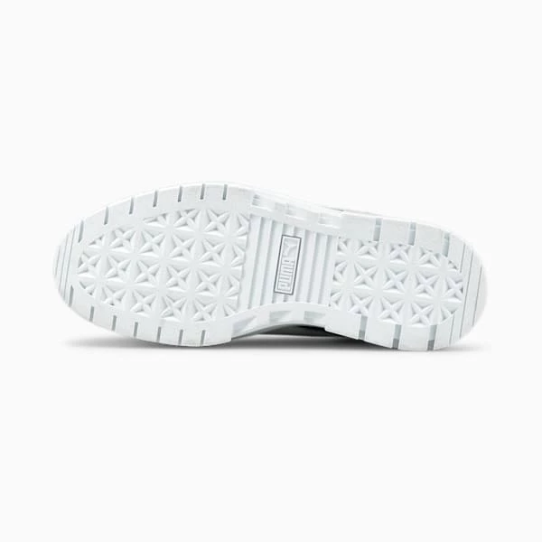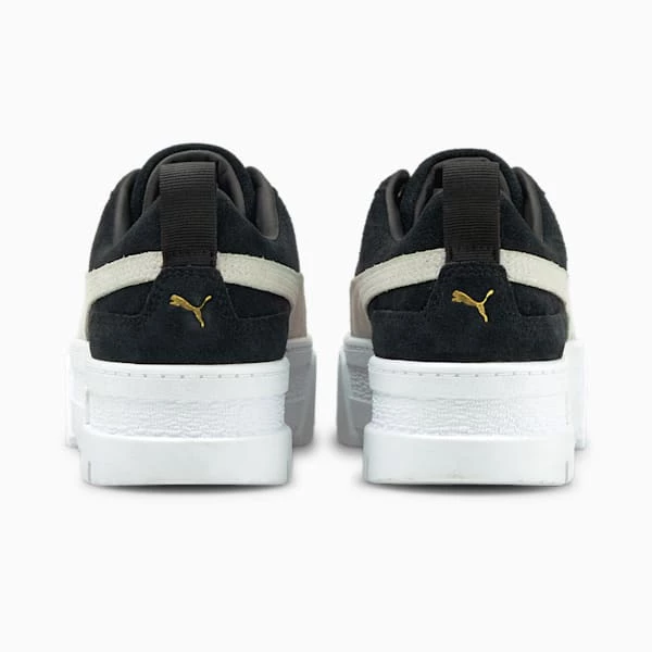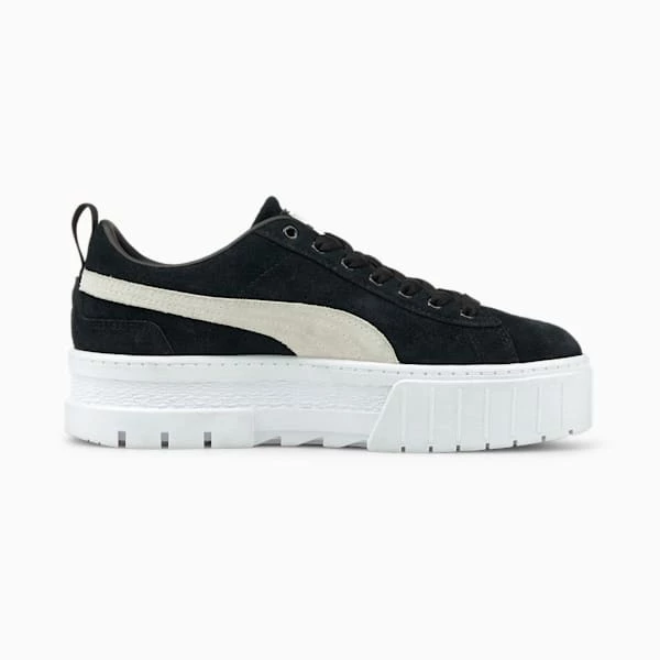 Elevate your style with Mayze. This stand-out silhouette is bold and edgy, with a stacked sole and dynamic, layered tooling.<h3> DETAILS </h3><ul><li>Lo-top silhouette</li><li>Suede upper</li><li>Full lace closure</li><li>Platform rubber midsole with textured tooling</li><li>Rubber outsole for durable grip</li><li>PUMA Formstrip overlay at sides</li><li>Gold foil PUMA No.2 Logo at lateral side</li><li>PUMA Archive label at tongue</li><li>Webbing pull loop at heel</li></ul>