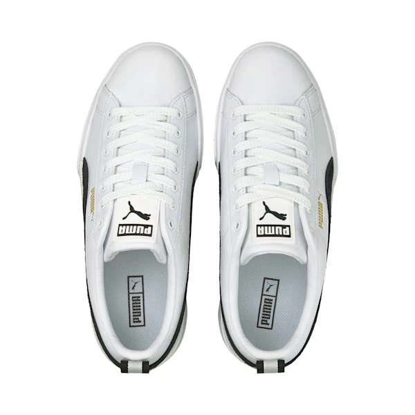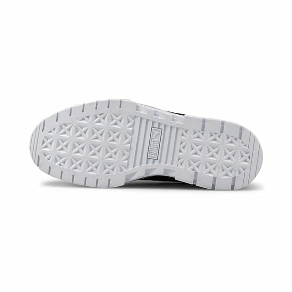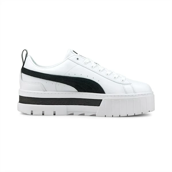 Get ready to find your style in Mayze. We made this one for the hype girls, the street enthusiasts, the trend mavens. This stand-out silhouette takes design inspiration straight from the streets, with a stacked sole and contrasting rubber tooling for an edgy, layered look.<h3> DETAILS </h3><ul><li>Leather upper with suede and synthetic overlays</li><li>Full lace closure</li><li>Platform rubber midsole with textured tooling</li><li>Rubber outsole provides durable grip and traction</li><li>Suede PUMA Formstrip overlay at sides</li><li>Striped webbing pull loop at heel</li><li>Gold foil PUMA No.2 Logo at lateral side</li><li>PUMA label at tongue</li></ul>