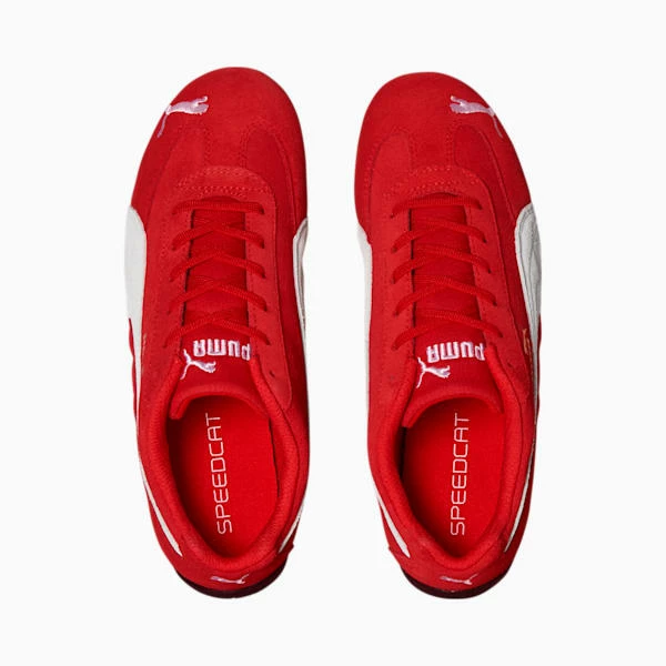 You weren’t made to follow, so don’t. Deviate from the pack in Speedcat. This classic kick has owned the intersection between track and street for generations– and it’s showing no signs of slowing down. Wrapped in rich suede and finished off with a tire tread bottom, it’s a little unorthodox– but then again, so are you. So take a chance, stand out, and dare to differ. But whatever you do, do it in Speedcat.<h3>DETAILS</h3><ul><li>Low profile motorsport silhouette</li><li>Suede upper with tonal T-toe overlay</li><li>Full lace closure</li><li>Low profile rubber outsole for durable grip</li><li>Rounded driver’s heel</li><li>Contrast PUMA Formstrip overlay at sides</li><li>Embroidered PUMA Cat Logo at lateral toe and heel</li><li>Gold foil PUMA No.1 Logo at lateral side</li><li>PUMA No.1 Logo embroidery at tongue</li></ul>