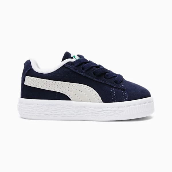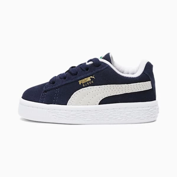 <h3> PRODUCT STORY </h3><p>The Suede hit the scene in 1968 and has been changing the game ever since. It’s been worn by the icons of every generation and it’s stayed classic through it all. This year, we relaunch the Suede with fresh colorways and subtle design updates for the next generation of icons. Classic as ever.</p><h3> FEATURES & BENEFITS </h3><ul><li>Kinder-Fit®: PUMA’s removable sockliner for kids’ styles</li></ul><h3> DETAILS </h3><ul><li>Classic Suede lo-top silhouette</li><li>Suede upper</li><li>Elastic lace closure for easy access and a secure fit</li><li>Rubber midsole</li><li>Non-marking rubber outsole for durable grip and traction</li><li>PUMA Formstrip overlay at sides</li><li>PUMA Suede gold foil callout at lateral side</li><li>PUMA Archive woven label at tongue</li></ul>