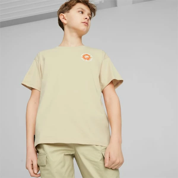 <h3> PRODUCT STORY </h3><p>Show a little love for planet Earth in this retro-inspired slogan tee. Colorful graphics and an on-trend relaxed fit make this Downtown tee a downtime favorite.</p><h3> FEATURES & BENEFITS </h3><ul><li>COTTON: Cotton in PUMA products comes from farms with a focus on sustainable farming such as water efficiency and soil health protection. Learn more: https://about.puma.com/forever-better</li></ul><h3> DETAILS </h3><ul><li>Relaxed fit</li><li>Ribbed crew neck</li><li>Graphic print on chest and back</li><li>PUMA BIg Kids: For older kids between 8 and 16 years old</li></ul>