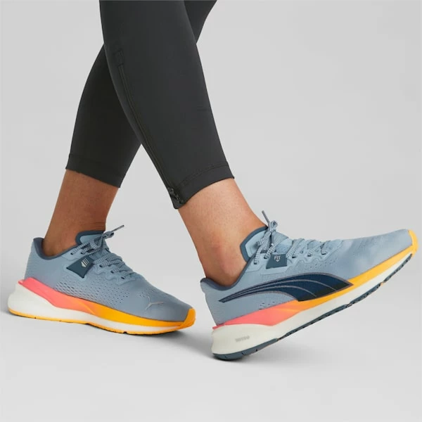 Let Eternity NITRO be your guide. The engineered mesh upper integrates the runGUIDE tech, designed to hug your midfoot for an effortless ride. For the midsole, NITRO foam provides superior cushioning, combining with other tech elements to give you support: a TPU heel piece for proprioception, reflectivity, and a durable rubber PUMAGRIP for all-surface traction. You lead the way, Eternity NITRO will keep you in line. Distinctive design options aren’t enough. We want to be the first brand to create a specific last for women’s running shoes that take her into consideration—shape, fit, and contour. Our new women’s running shoes are made to fit the profile of the female foot so she can run in comfort and reach her goals with a narrowed heel, lower instep, and adjusted women’s arch ratio.