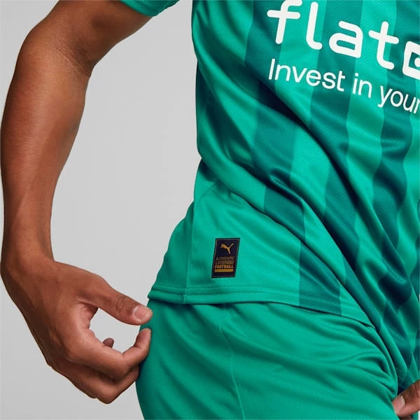 <h3> PRODUCT STORY </h3><p>A staple in the game of soccer, the striped jersey is redesigned to keep up with Die Fohlen. The 2022/23 Borussia Mönchengladbach away jersey’s green-on-green tonal stripes combine sharp edges with blur effects for a bold, contemporary look. The PUMA Cat, sponsor logo, and meistersterne are featured in white, adding contrast to the green jersey.</p><h3> FEATURES & BENEFITS </h3><ul><li>DRY: dryCELL: Performance technology designed to wick moisture from the body and keep you free of sweat during exercise</li><li>FOREVER BETTER: Made with at least 20% recycled material as a step toward a better future</li><li>MIDORI: Made with the bio-based finishing treatment miDori® bioWick</li></ul><h3> DETAILS </h3><ul><li>Regular fit</li><li>Set-in sleeve construction with raglan back seam</li><li>Flat knit V-neck</li><li>PUMA Cat Logo on the chest and sleeves</li><li>Official team crest on the chest</li></ul>
