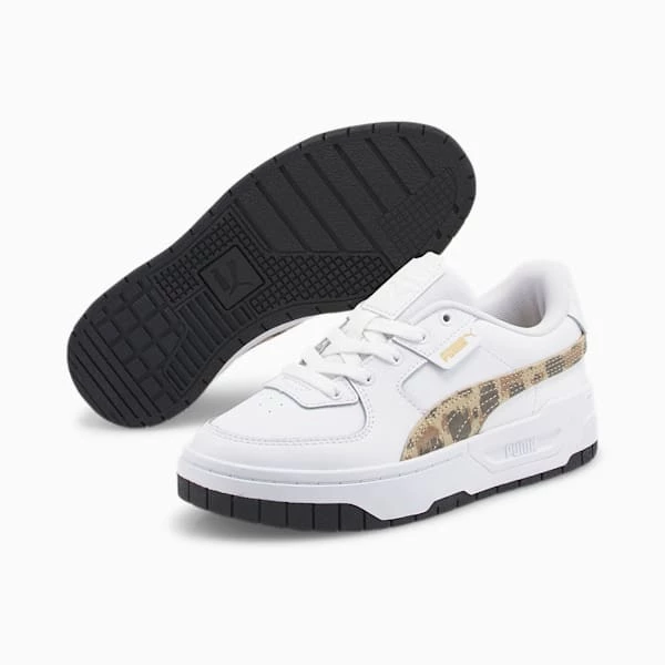 <h3> PRODUCT STORY </h3><p>It’s the Cali you’ve always dreamed of: incorporating contrast details into the familiar chunky platform sole and a cheeky animal-print PUMA Formstrip, these Cali Dreams are a fun addition to your summer footwear.</p><h3> FEATURES & BENEFITS </h3><ul><li>LWG: The leather sourced in this product comes from environmentally responsible leather manufacturing and is audited and certified via the Leather Working Group protocol</li></ul><h3> DETAILS </h3><ul><li>Leather and synthetic leather upper with tumbled leather overlays</li><li>Rubber midsole with a TPU insert</li><li>Rubber outsole</li><li>Suede animal-print PUMA Formstrip on the medial and lateral sides</li><li>PUMA Big Kids: For older kids between 8 and 16 years old</li></ul>