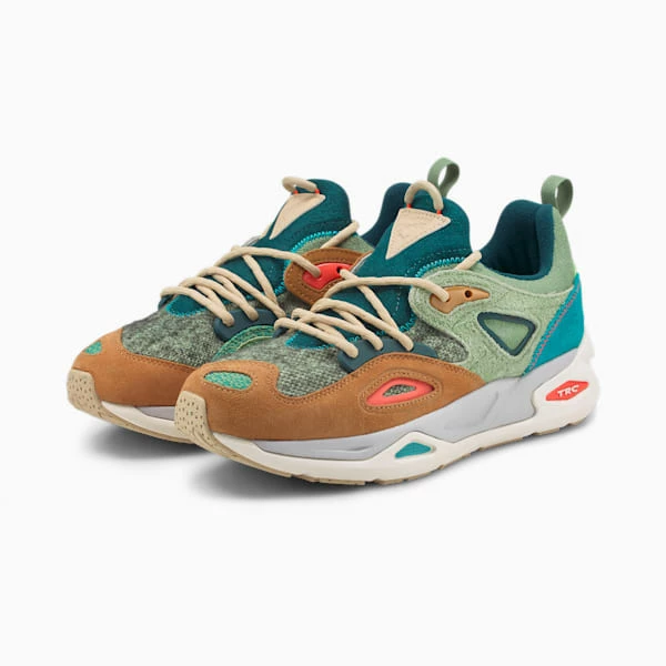 <h3> PRODUCT STORY </h3><p>Rich earth tones combine for a cool color block look in the Childhood Dreams TRC Blaze. A chunky two-tone midsole and neon coral accents are distinct ‘90s references—a common thread throughout the collection, while knit, suede, and jacquard fabric panels lend the mixed media design a textural effect. Triangular Trinomic markings are complemented by a branded leather tongue accent of the same shape, bringing a whole new meaning to three-pointer.</p><h3> FEATURES & BENEFITS </h3><ul><li>CMEVA: PUMA’s compression-moulded EVA material for lightweight performance</li></ul><h3> DETAILS </h3><ul><li>Low boot</li><li>Mesh upper with leather overlays</li><li>Lycra collar and tongue with mesh lining</li><li>EVA midsole</li><li>Rubber outsole</li><li>TPU eyelets and windows</li><li>PUMA No. 2 Logo and Formstrip on the lateral heel</li><li>TRC branding on the tongue and lateral heel</li></ul>