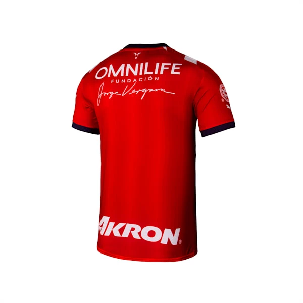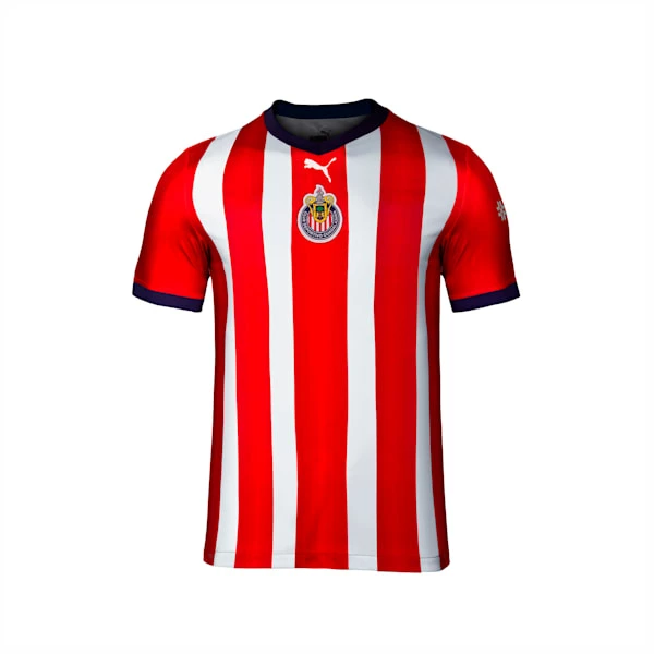 <h3> PRODUCT STORY </h3><p>Be the loudest when they need you the most. Chivas Home Jersey is for the true die-hards. dryCELL tech wicks away moisture to keep you dry and comfortable. Even in the most tense environments. Rep your favorite team with the latest jersey from the ’22/’23 season.</p><h3> FEATURES & BENEFITS </h3><ul><li>DRY: dryCELL: Technical fabric wicks moisture away from skin to keep you dry and comfortable</li></ul><h3> DETAILS </h3><ul><li>Regular fit</li><li>V-neck</li><li>Chivas Team Crest at center chest</li><li>PUMA Cat logo at front and sleeve</li><li>PUMA Big Kids: Recommended for older kids between 8 and 16 years old.</li></ul>