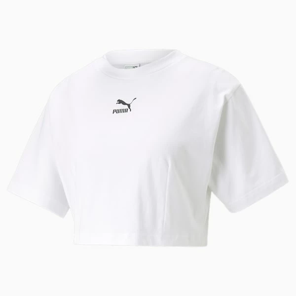 <h3> PRODUCT STORY </h3><p>This is for the bold: The Dare To Cropped Relaxed Tee comes with dropped shoulders and a cropped hem for a dynamic look that is at home both in the gym and on the street. Made of 100% cotton, the ribbed crew neck offers extra comfort and the PUMA logo offers extra flair.</p><h3> FEATURES & BENEFITS </h3><ul><li>COTTON: Cotton in PUMA products comes from farms with a focus on sustainable farming such as water efficiency and soil health protection. Learn more: https://about.puma.com/forever-better</li></ul><h3> DETAILS </h3><ul><li>Ribbed crew neck</li><li>Dropped shoulders</li><li>Rubber-print PUMA Archive No. 1 Logo on chest</li></ul>
