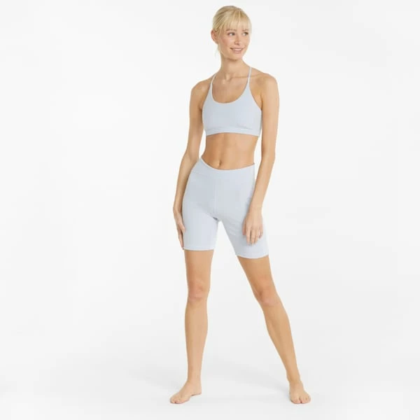 <p>For light, stylish support during your workout, this simple bralette offers supreme comfort. The soft ribbed fabric and unpadded design give you a natural shape and maximum freedom of movement, and the delicate criss-cross straps are adjustable for the perfect fit. Ideal for low-impact exercise, this bra top can be worn under your favourite sports tee or on its own.</p><h3> FEATURES & BENEFITS </h3><ul><li>Contains Recycled Material: Made with recycled fibers. One of PUMA’s answers to reduce our environmental impact.</li></ul><h3> DETAILS </h3><ul><li>Non-padded bra</li><li>Adjustable straps</li><li>Embroidered shiny mirrored PUMA Cat Logo at center back</li><li>Modal, cotton, recycled cotton, recycled polyester and elastane</li></ul>
