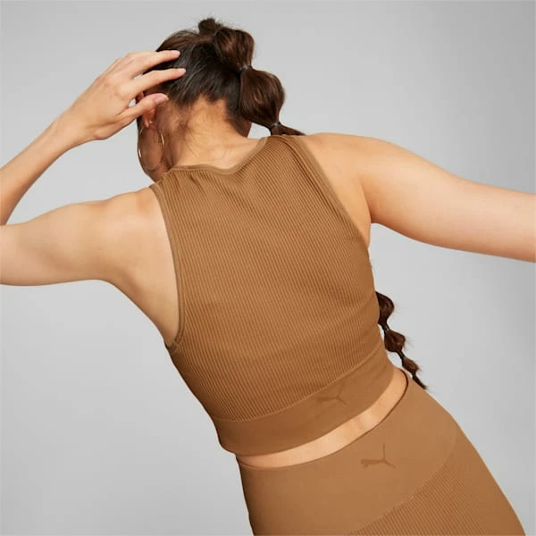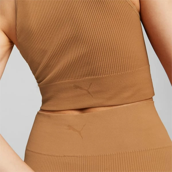Sustainable meets street sleek in our eye-catching Infuse collection. Made using recycled materials, with slim, form-fitting cut lines, a crew neck, seamless construction for reduced friction and enhanced range of motion, sophisticated brand elements and a sporty silhouette, this cool crop top will have you catching all the best attention.<h3>FEATURES & BENEFITS</h3><ul><li>Contains Recycled Material: Made with recycled fibers. One of PUMA’s answers to reduce our environmental impact.</li><li>EVOKNIT: PUMA’s knitted design and seamless technology for lightweight, breathable, form-fitting comfort and the ultimate ergonomic fit</li></ul><h3>DETAILS</h3><ul><li>Slim, lightweight knit for form-fitting comfort</li><li>Crew neck</li><li>Seamless construction for freedom of movement and reduced friction</li><li>PUMA Infuse Wordmark at chest</li><li>PUMA Cat Logo jacquard at back</li></ul>