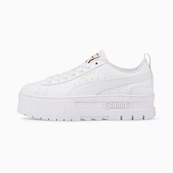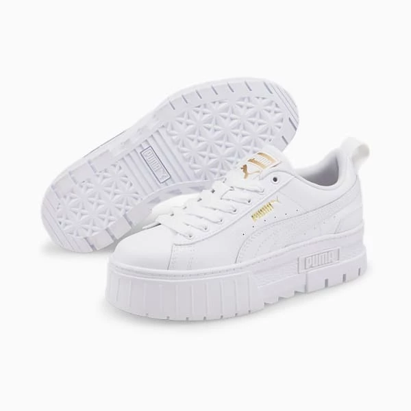 <h3> PRODUCT STORY </h3><p>Catch their eye with layers of leather. We took the iconic Mayze design and dialed it up a notch in the all-new Mayze Stack. A brand-new platform meets sleek leather details for a look that’s ready to grab some attention – no matter where you go.</p><h3> DETAILS </h3><ul><li>Leather upper</li><li>EVA midsole</li><li>Rubber outsole</li><li>Synthetic overlay on heel and eyestay</li><li>Lace closure for a snug fit</li><li>Synthetic PUMA Formstrip at medial and lateral sides</li><li>PUMA Archive No. 1 Label at tongue</li><li>Debossed and foil-printed PUMA No. 2 Logo at quarter and heel cap</li><li>PUMA Big Kids style: Recommended for older kids between 8 and 16 years</li></ul>