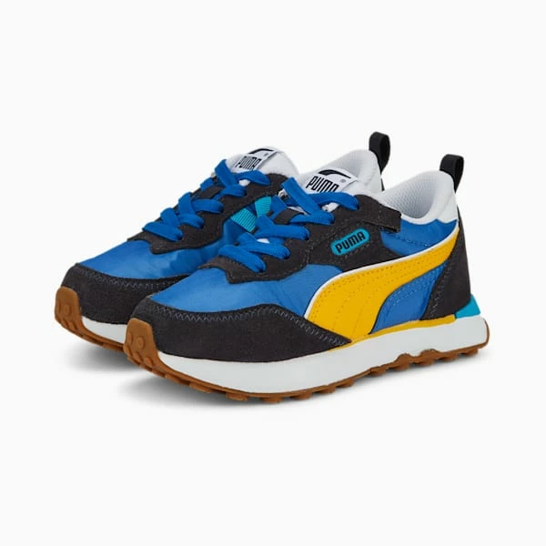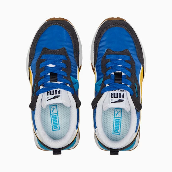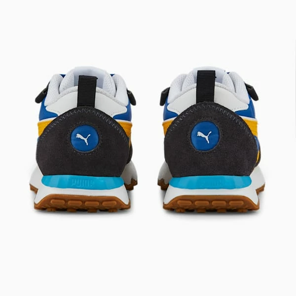 <h3> PRODUCT STORY </h3><p>Pop these on your kid and they’ll have one foot in the past and one foot in the present: the best way to describe the effect of the Rider FV, the newest member of the Rider clan. Embracing the past with a nostalgic, heritage-inspired upper, these sneakers also include the best of the present with fresh tooling. A flat nylon upper with suede overlays finishes off this time-travelling look for adventurous kids.</p><h3> DETAILS </h3><ul><li>Flat nylon upper</li><li>EVA midsole</li><li>Rubber outsole</li><li>PUMA Formstrip on the lateral and medial sides</li><li>PUMA Cat Logo on the heel</li><li>PUMA Little Kids: Recommended for younger kids between 4 and 8 years</li></ul>