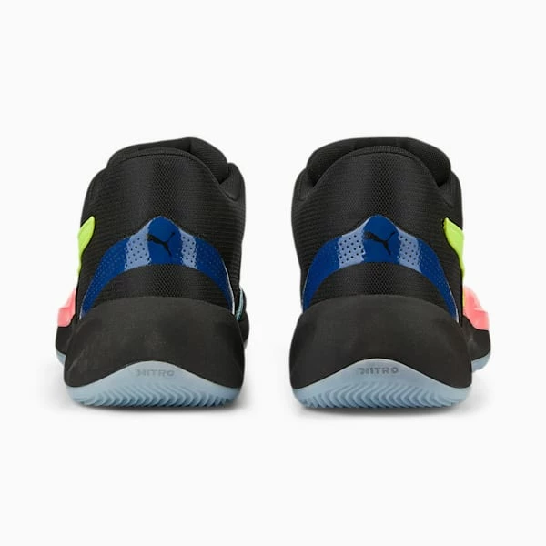 <h3>PRODUCT STORY</h3>Elevate your game with the Rise NITRO, a next-level performance basketball shoe. Made from engineered knit, the upper’s seamless multi-zone construction offers lightweight support, breathability, and comfort, while innovative PUMA Hoops tech—including NITRO foam—ensures ultimate responsiveness and supreme cushioning. Strategically placed PWRTAPE provides targeted reinforcement for added stability. Bonus: All this court-ready function comes in a fashion-forward design, with vibrant pops of color combining to create our iconic formstrip. Prepare to take it up a notch on all fronts.<h3>FEATURES & BENEFITS</h3><ul><li>CUSHIONING: NITRO foam infused within the midsole for superior responsiveness and comfort while remaining lightweight. Perfect for high-energy, explosive playmakers.</li><li>ENERGY: PROPLATE: Innovative asymmetrical plate acts as a lever for maximum energy transfer on every fast break.</li><li>SUPPORT: PWRTAPE: Targeted reinforcement for upper support and stability when cutting and jumping.</li><li>GRIP: Full-coverage engineered nonslip rubber compound for enhanced durability and traction. Ideal for quick cuts and spot up jumpers.</li></ul><h3>DETAILS</h3><ul><li>Lace closure</li><li>Lightweight knit upper extends up and over the laces for a secure fit</li><li>PUMA Cat logo on tongue</li><li>PUMA Cat logo on heel</li><li>PUMA Cat Logo on outsole</li></ul>
