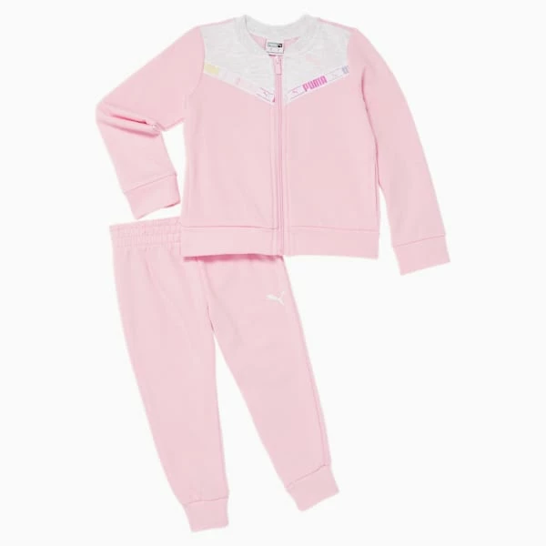 <h3> PRODUCT STORY </h3><p>Dressing your kid in the morning is easy when their outfits come preplanned. Take the hassle out of searching for a matching fit with this two piece set. The top matches the bottoms. The bottoms match the top. They’re both cute. Simple.</p><h3> DETAILS </h3><ul><li>Includes two pieces</li><li>Zip up crewneck top</li><li>Long sleeves</li><li>Elastic wiastband</li><li>PUMA Cat logo at chest and thigh</li><li>PUMA Toddler: For toddlers age 0 to 4</li></ul>