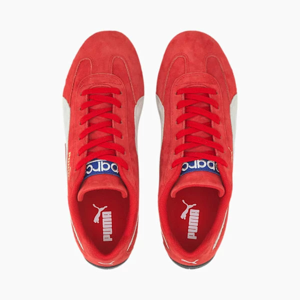 Born for speed. Raised in style. The Speedcat returns 20 years later for its second season, backed by motorsport legends Sparco. In 1999, PUMA partnered with Sparco to bring the very first model, designed to bring track style to the streets. 20 years later, we re-launch the groundbreaking silhouette to a completely new generation of motorsport fans and streetwear icons.<h3> DETAILS </h3><ul><li>Low profile silhouette</li><li>Suede upper with t-toe overlays</li><li>Full lace closure</li><li>Rubber outsole for traction and grip</li><li>Rounded driver’s heel</li><li>PUMA Formstrip at lateral side</li><li>Embroidered Sparco patch at tongue</li><li>PUMA No.1 Logo at side</li></ul>