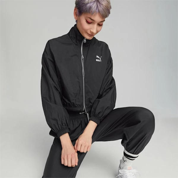 <h3> PRODUCT STORY </h3><p>A stripped down jacket that looks as great with jeans and a tee as it does with athleisurewear, the SQ Woven Track Jacket features a practical two-way zipper that makes it easy to take on and off, plus a practical cord stopper on the side seam of the waistband to keep everything in place. And thanks to the relaxed fit, it’s also right on trend.</p><h3> FEATURES & BENEFITS </h3><ul><li>FOREVER BETTER: Made with at least 20% recycled material as a step toward a better future</li></ul><h3> DETAILS </h3><ul><li>Relaxed fit</li><li>Elasticated cuffs and waistband</li><li>Two-way full-zip closure</li><li>Rubber glitter PUMA Archive No. 1 Logo on the chest</li></ul>