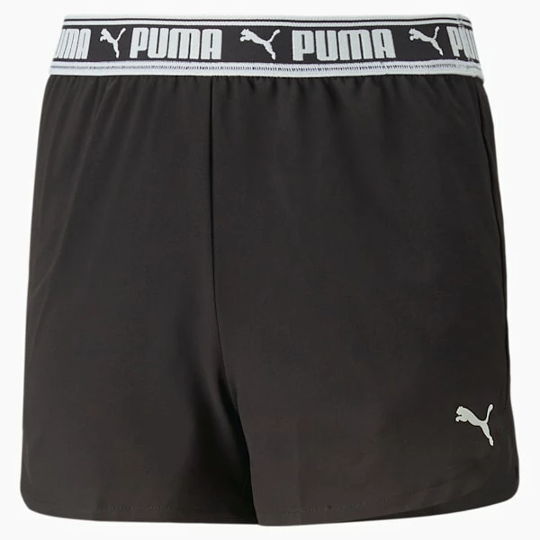 <h3> PRODUCT STORY </h3><p>If you’re looking for a strong shorts game, look no further. PUMA’s Strong Woven Shorts are simple in design with a flattering high rise, above-the-knee, regular fit. They contain dryCELL technology to keep you cool and dry, and feature branded details including the repeat pattern waistband.</p><h3> FEATURES & BENEFITS </h3><ul><li>DRY: dryCELL: Performance technology designed to wick moisture from the body and keep you free of sweat during exercise</li><li>FOREVER BETTER: Made with at least 50% recycled material as a step toward a better future</li></ul><h3> DETAILS </h3><ul><li>Regular fit</li><li>High rise</li><li>Above-knee length</li><li>PUMA Cat Logo</li><li>Elastic waistband with repeated PUMA wording</li><li>PUMA Big Kids: For older kids between 8 and 16 years old</li></ul>