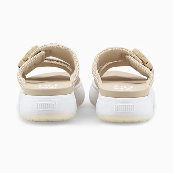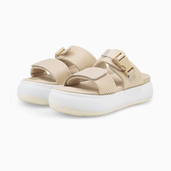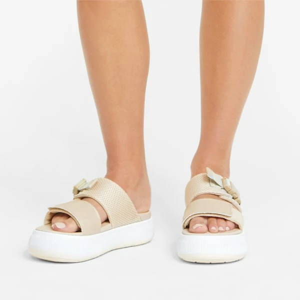 <h3> PRODUCT STORY </h3><p>Turn heads and raise interest with the statement stacked sole and trendy chunky lines of our Suede Mayu Infuse Beach Sandals. We pumped up the volume on this sandal to deliver the pillowiest, most exaggerated sole to amplify comfort and quench even the fashion-savviest appetites for on-trend lines. Our Suede Mayu Sandal Infuse Beach Sandals feature a mesh strap and buckle closure with recycled mesh lining on the straps for enhanced comfort and an all IMEVA sole for a luxurious stride that will have you walking on clouds.</p><h3> FEATURES & BENEFITS </h3><ul><li>IMEVA: PUMA’s material for a lightweight and comfortable feel</li><li>Contains Recycled Material: Made with recycled fibers. One of PUMA’s answers to reduce our environmental impact.</li></ul><h3> DETAILS </h3><ul><li>Sandal construction</li><li>Recycled mesh straps</li><li>IMEVA midsole</li><li>IMEVA outsole</li><li>Buckle closure</li><li>Recycled mesh lining on straps</li><li>Leather vamp strap with PUMA Cat Logo</li><li>Second strap with thicker webbing on top and TPU buckle</li><li>Leather label with debossed and tonal printed PUMA Infuse branding</li></ul>