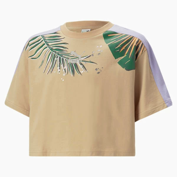 <h3> PRODUCT STORY </h3><p>Embrace laid-back vacay vibes all day every day in this cute graphic tee. The perfect piece for chill-out queens, it comes in a relaxed fit with vintage T7 stripes and rubber-print floral graphics. Throw it together with your favorite sweatpants or leggings for an effortless look that pops with attitude.</p><h3> FEATURES & BENEFITS </h3><ul><li>COTTON: Cotton in PUMA products comes from farms with a focus on sustainable farming such as water efficiency and soil health protection. Learn more: https://about.puma.com/forever-better</li></ul><h3> DETAILS </h3><ul><li>Relaxed fit</li><li>Cropped cut</li><li>T7 stripe on the sleeves</li><li>Floral rubber print on the front</li><li>Ribbed crew neck</li><li>PUMA Archive No. 1 Logo in foil print on the chest</li></ul>