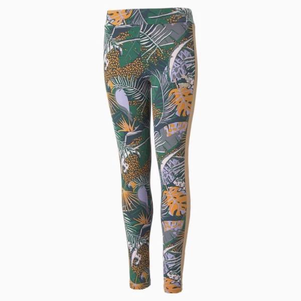 <h3> PRODUCT STORY </h3><p>Brighten up your wardrobe with funky vacay style all year round. Featuring a vibrant floral print, these leggings are designed for true holiday queens who want comfort without compromising on sass. Our signature T7 stripes add a dash of retro flair, giving heritage track style a bold refresh.</p><h3> FEATURES & BENEFITS </h3><ul><li>COTTON: Cotton in PUMA products comes from farms with a focus on sustainable farming such as water efficiency and soil health protection. Learn more: https://about.puma.com/forever-better</li></ul><h3> DETAILS </h3><ul><li>Tight fit</li><li>T7 stripe on the legs</li><li>All-over floral print</li><li>PUMA Archive No. 1 Logo on the thigh</li><li>PUMA Big Kids: For older kids between 8 and 16 years old</li></ul>