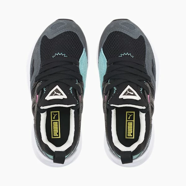 <h3> PRODUCT STORY </h3><p>Way back in the ’90s, our Trinomic sneakers heralded a new age of shoe technology. The designs centred around three core elements: cushioning, flexibility and stability – represented by the iconic triangle logo. Three decades later, we’re proud to introduce the TRC Blaze, inspired by the very same vintage running models. This time, an athletic mesh upper collides with suede overlays, Lycra features and TPU elements to form a chunky, cutting-edge silhouette.</p><h3> FEATURES & BENEFITS </h3><ul><li>CMEVA: PUMA’s compression-moulded EVA material for lightweight performance</li></ul><h3> DETAILS </h3><ul><li>Low boot</li><li>Mesh upper with suede toe and heel overlays</li><li>Synthetic leather A-frame overlay with embossed 3D detailing</li><li>TPU eyelets and windows</li><li>Lycra collar and tongue with mesh lining</li><li>CMEVA midsole</li><li>Non-marking rubber outsole</li><li>PUMA No. 2 Logo and PUMA Formstrip branding at lateral heel</li><li>PUMA Cat Logo at heel pull</li><li>PUMA Little Kids’ style: Recommended for young kids between 4 and 8 years</li></ul>