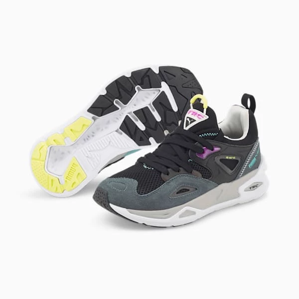 <h3> PRODUCT STORY </h3><p>Way back in the ’90s, our Trinomic sneakers heralded a new age of shoe technology. The designs centred around three core elements: cushioning, flexibility and stability – represented by the iconic triangle logo. Three decades later, we’re proud to introduce the TRC Blaze, inspired by the very same vintage running models. This time, an athletic mesh upper collides with suede overlays, Lycra features and TPU elements to form a chunky, cutting-edge silhouette.</p><h3> FEATURES & BENEFITS </h3><ul><li>CMEVA: PUMA’s compression-moulded EVA material for lightweight performance</li></ul><h3> DETAILS </h3><ul><li>Low boot</li><li>Mesh upper with suede toe and heel overlays</li><li>Synthetic leather A-frame overlay with embossed 3D detailing</li><li>TPU eyelets and windows</li><li>Lycra collar and tongue with mesh lining</li><li>CMEVA midsole</li><li>Non-marking rubber outsole</li><li>PUMA No. 2 Logo and PUMA Formstrip branding at lateral heel</li><li>TRC branding at heel pull</li><li>PUMA Big Kids style: Recommended for older kids between 8 and 16 years</li></ul>