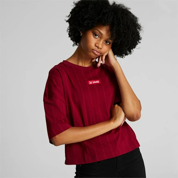 <h3> PRODUCT STORY </h3><p>Since 1886, COCA-COLA has been changing the game with their delicious beverages and iconic ads. Today, PUMA and COCA-COLA come together for a nostalgic collab that celebrates both brands’ heritage. Classic PUMA silhouettes like T7 track suits and Suedes are reimagined with vintage COCA-COLA pinstripes, a retro color palette, and elevated details.Collection pieces, like this pinstripe tee, incorporate both brands’ DNA with a future-retro design language and, of course, Coke’s classic branding.</p><h3> FEATURES & BENEFITS </h3><ul><li>COTTON: Cotton in PUMA products comes from farms with a focus on sustainable farming such as water efficiency and soil health protection. Learn more: PUMA.com/forever-better</li></ul><h3> DETAILS </h3><ul><li>Relaxed fit</li><li>Rib crew neck</li><li>Co-branded PUMA x COCa-COLA lock-up badge on chest</li><li>Jacquard pinstripes</li><li>Single jersey</li></ul>