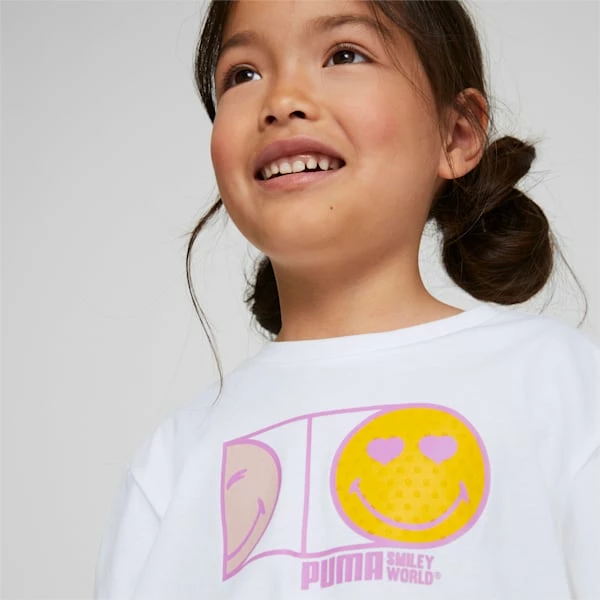 <h3> PRODUCT STORY </h3><p>This one’s for the kids. Introducing the PUMA x SMILEYWORLD collection. With bold graphics, a sport-inspired design, and positive vibes bursting from the seams, this knot tee will make ‘em smile.</p><h3> FEATURES & BENEFITS </h3><ul><li>COTTON: Cotton in PUMA products comes from farms with a focus on sustainable farming such as water efficiency and soil health protection. Learn more: https://about.puma.com/forever-better</li></ul><h3> DETAILS </h3><ul><li>Relaxed fit</li><li>Ribbed crewneck</li><li>Knot detail</li><li>Printed PUMA and Smiley graphic on the chest</li><li>Woven PUMA and Smiley patch on the sleeve</li></ul>